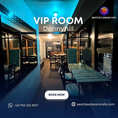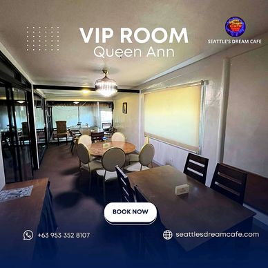 Can accommodate 25 to 30 guests depending on the seating arrangement, has a buffet food corner, mini-stage, online videoke setup, overlooking the whole theater, the garden area and part of the coffee shop area, shared VIP comfort room, glass enclosed with retractable blinds and semi-sound proof.