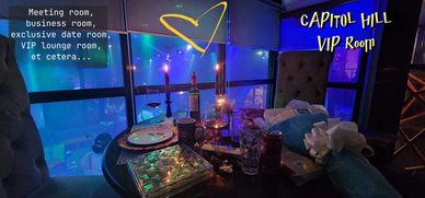 Can accommodate 7 to 10 guests depending on the seating arrangement, overlooking the theater stage, has its own stairs, direct access to the band and artists lounge and to the back door going to the garden area , shared VIP comfort room, glass enclosed with retractable blinds and semi-sound proof.